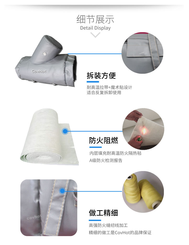 1、絕熱保溫效果好,隔熱層采用新型柔性耐熱纖維隔熱材料,耐溫范圍廣,最高能達(dá)到1000℃以上。