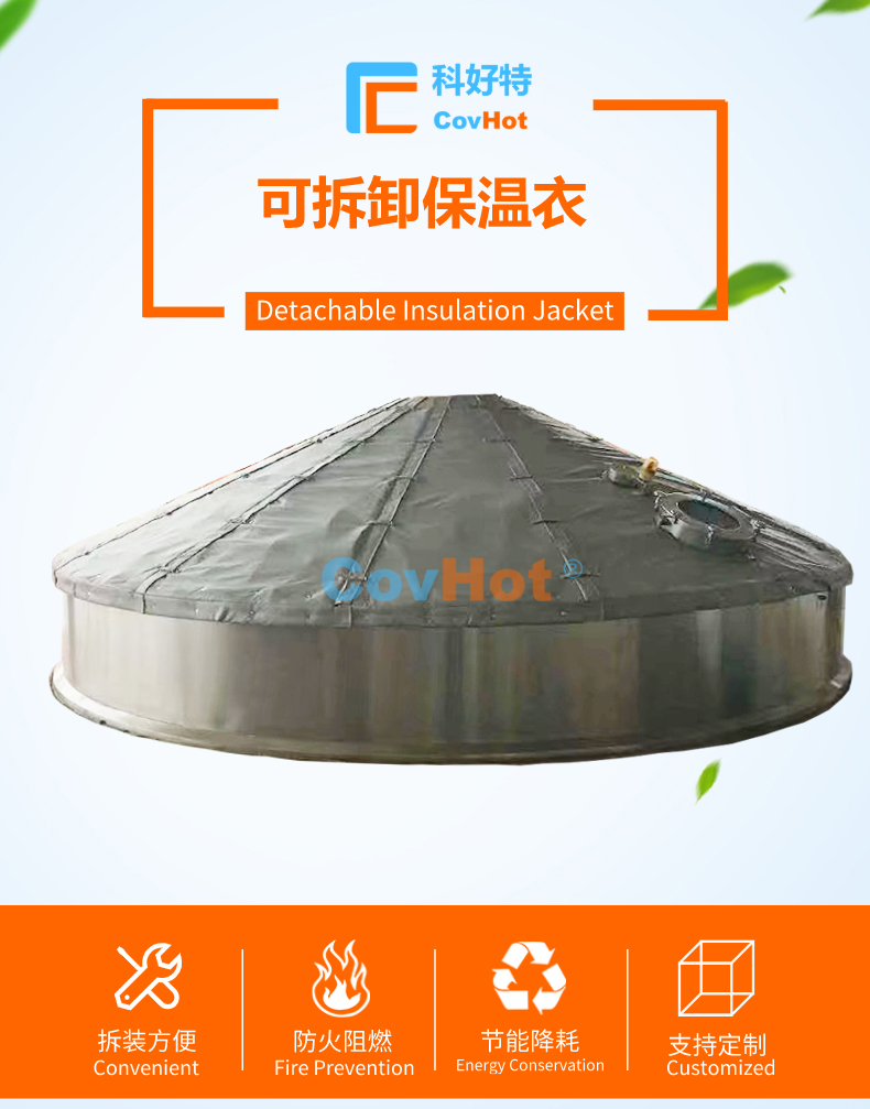 COVHOT®柔性可拆卸式糖化鍋鍋蓋保溫套保溫衣采用多層工業(yè)級(jí)材質(zhì)復(fù)合制成,常用的材料多達(dá)二十余種,考慮到設(shè)備溫度,現(xiàn)場(chǎng)工況,預(yù)期的節(jié)能效果等因素,另外根據(jù)保溫材質(zhì)的導(dǎo)熱系數(shù),憎水性,耐磨性,耐酸堿性,防火等級(jí),耐油污性能等情況,科好特會(huì)為客戶選擇不同的材質(zhì)搭配,來滿足客戶多樣化及個(gè)性化節(jié)能保溫需求。